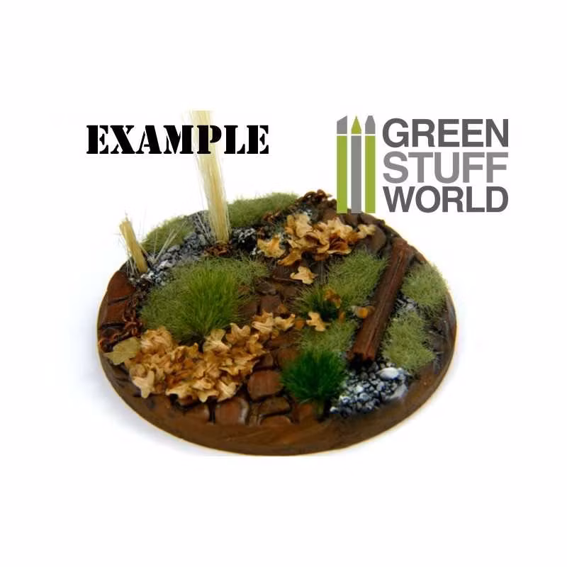 Leaf scatter material from a natural product that is almost perfect shaped like miniature leaves and ideal for 25mm (1/76) to 45mm (1/22) figures, scenery and terrain.