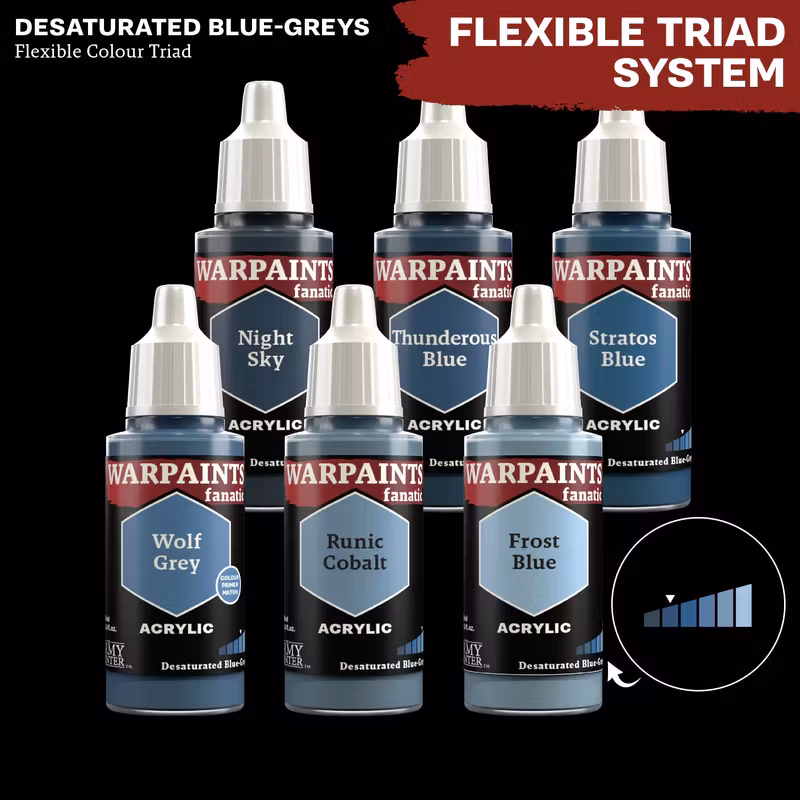 The Warpaints Fanatic: Thunderous Blue is a dark bluish grey with that is reminiscent of a stormy sky. It’s the second-darkest tone from the “Desaturated Blue-Greys” Flexible Colour Triad and its Practical Colour Name is “Dark Bluish Grey”.