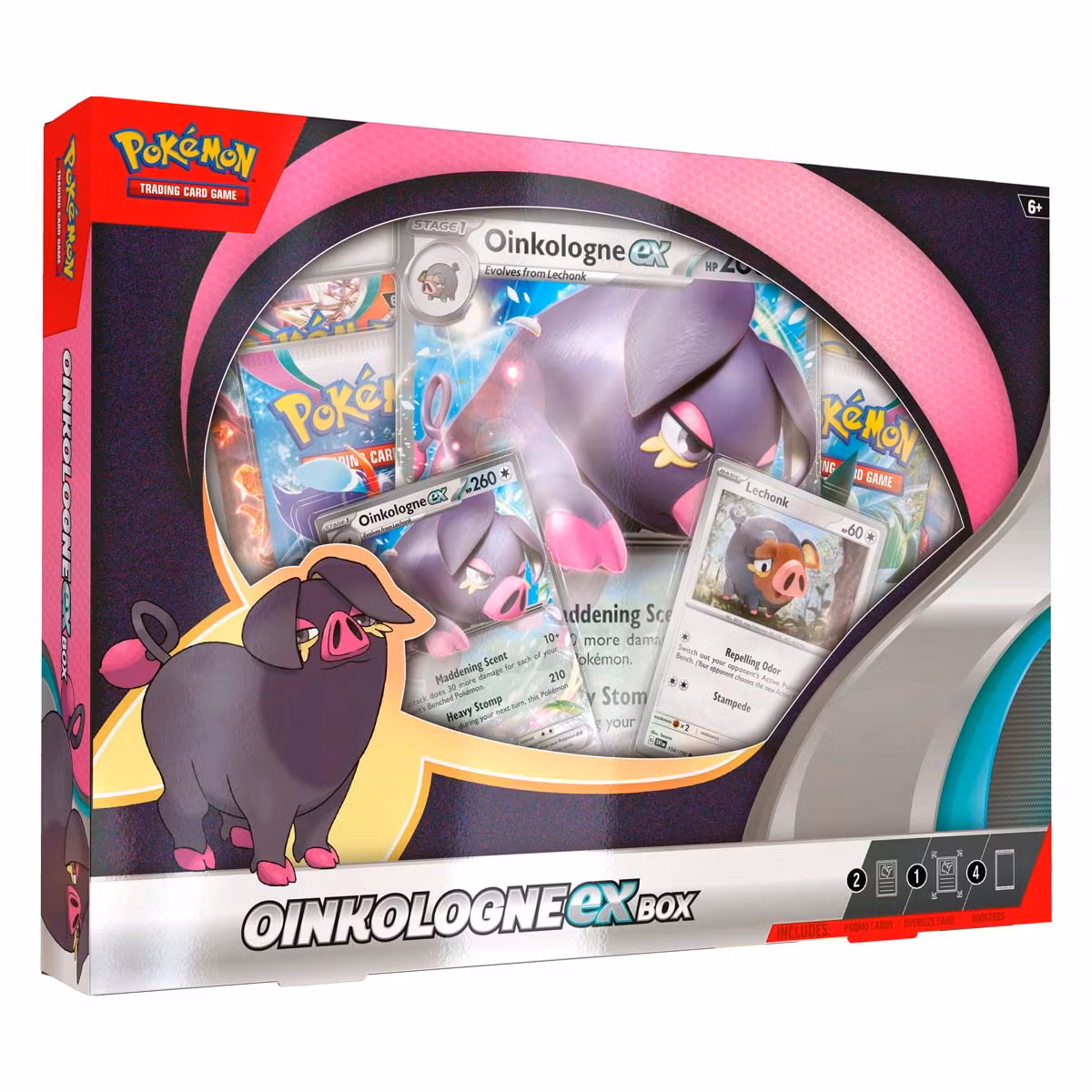 Pokemon TCG - Oinkologne EX Box 395 kr Produkten är tyvärr slut i lager. :( Information 1 double rare foil Card featuring Oinkologne ex1 foil Card featuring Lechonk1 oversize foil Card featuring Oinkologne ex4 Pokemon TCG Booster PacksA code Card for the Pokemon TCG Live