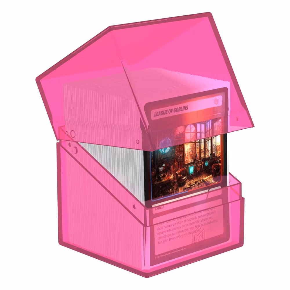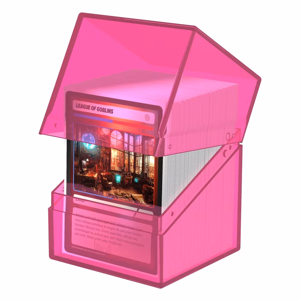 The legend is back in an all new look: with the transparent Boulder 100+ Clear, you'll always know exactly which cards are in your deck box. The Boulder 100+ Clear is a durable and reliable deck box with a secure closure. It can hold up to 100 double-sleeved or 120 single-sleeved cards from all popular trading card games like Magic: The Gathering, Pokémon, Lorcana, One Piece, or Yu-Gi-Oh!