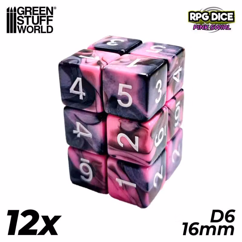 12x D6 16mm Dice - Pink Swirl