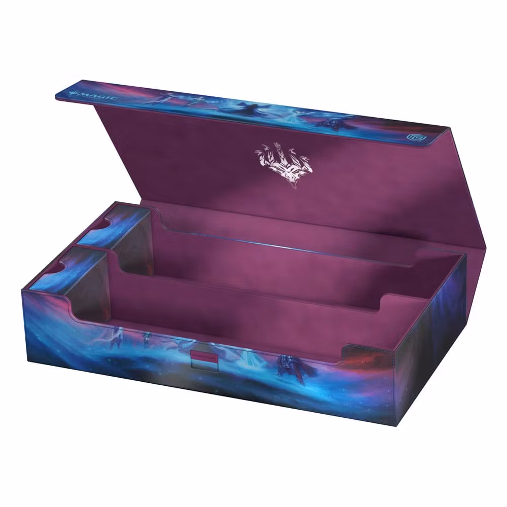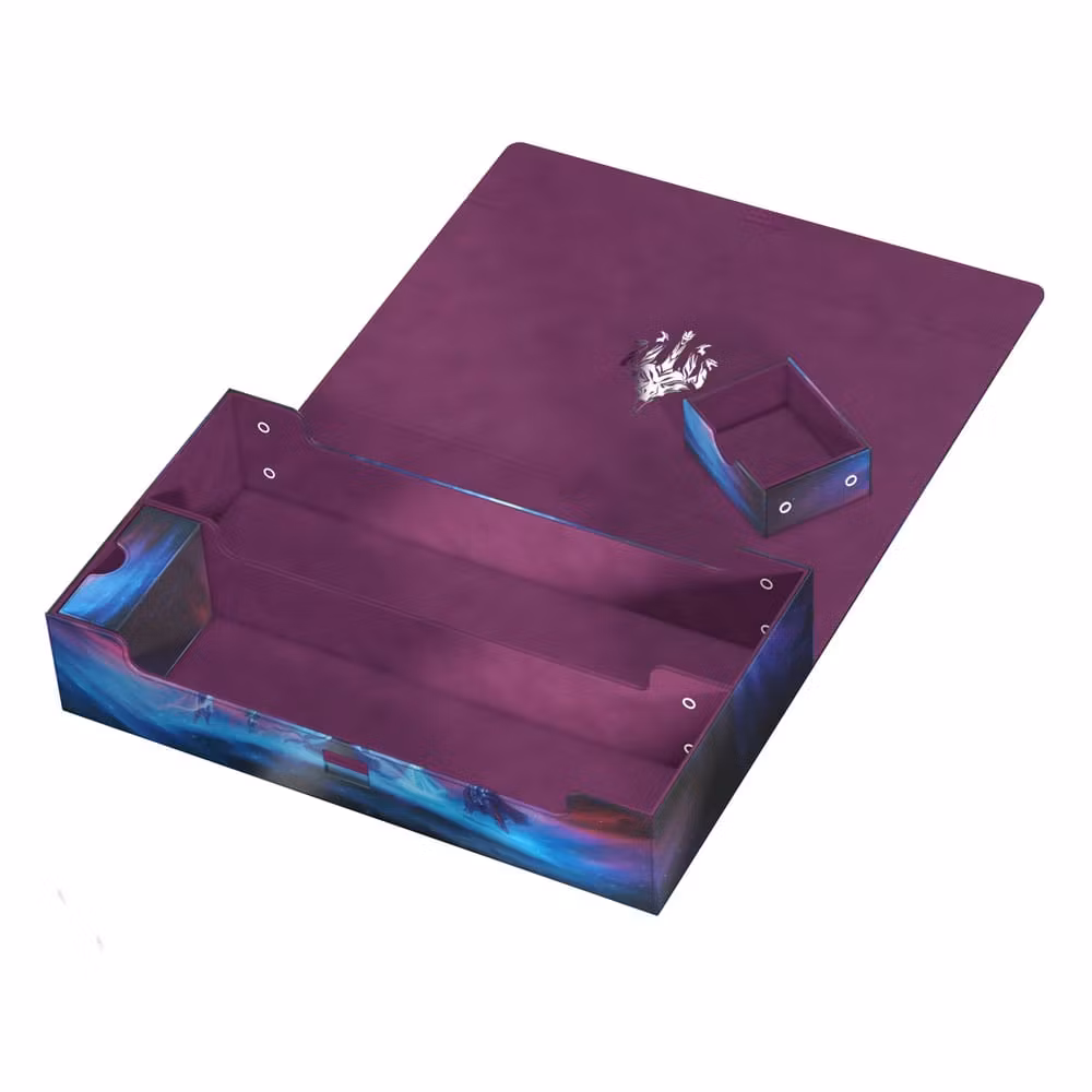 The Omnihive 1000+ Xenoskin gathers the mighty spirit dragons of Tarkir on a single deck box! Designed with two large main compartments and two flexibly positionable magnetic trays, the Omnihive can store up to 1000 single cards (double-sleeved), multiple deck boxes, accessories like dice, and/or play-mats simultaneously. The durable Xenoskin surface features the artwork Call the Spirit Dragons by Liiga Smilshkalne from Magic: The Gathering’s Tarkir: Dragonstorm set. The lid of the Omnihive is secured with strong magnets and our ZnapClaw mechanism, while the microfiber lining inside provides extra protection for cards, deck boxes, and accessories.