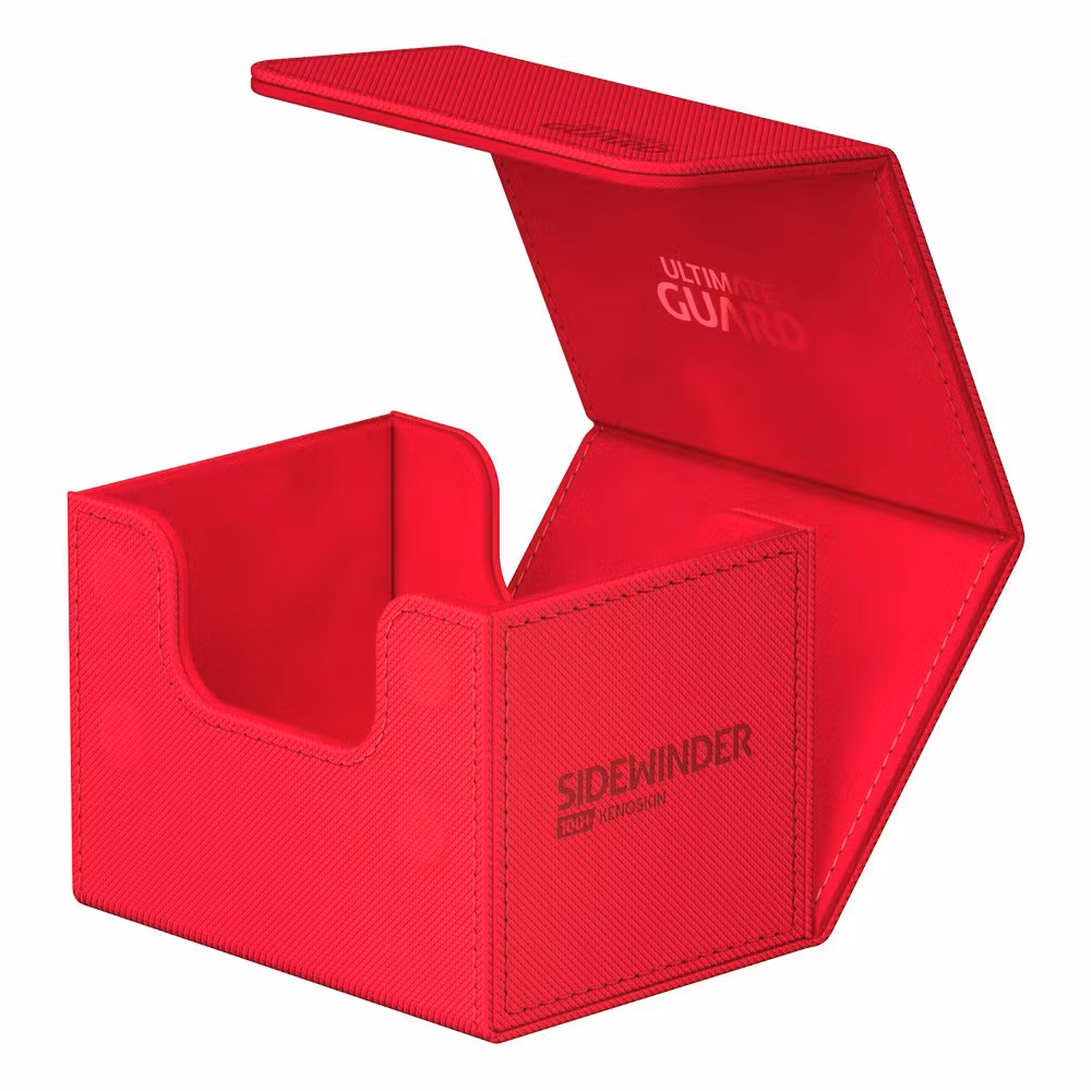 Our convenient Sidewinder 100+ deck case provides easy access to your card deck from both sides. The box is optimized to hold 100 double-sleeved or 120 single-sleeved standard sized cards in Ultimate Guard Sleeves.
