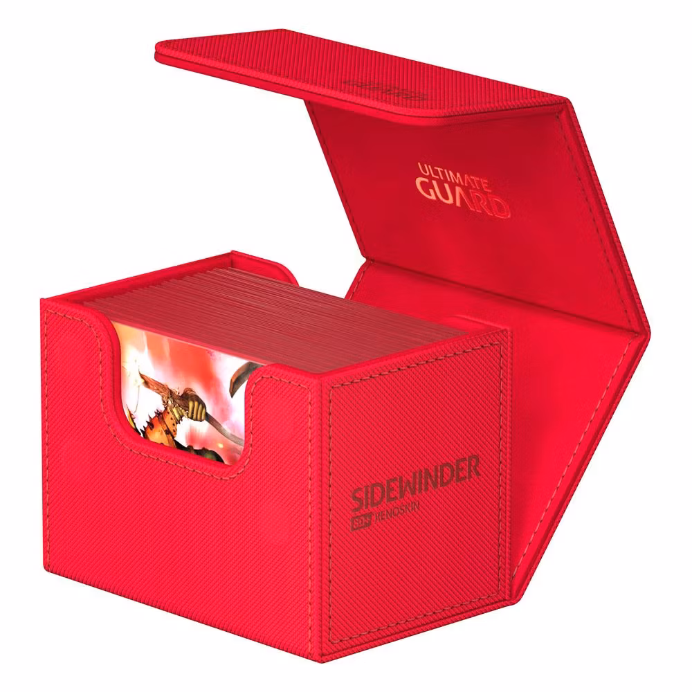 Our convenient Sidewinder 80+ deck case provides easy access from both sides to your card deck. The box is optimized to hold 80 double-sleeved or 100 single-sleeved standard sized cards in Ultimate Guard Sleeves.